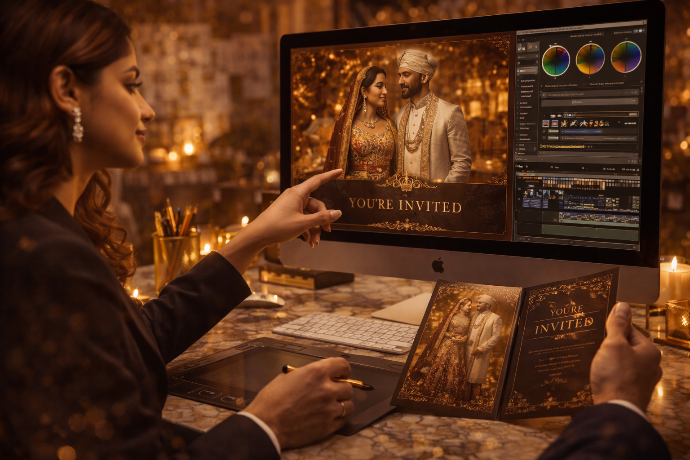Advanced AI refinement enhances lighting precision, tonal balance, and visual clarity. Every frame is polished to deliver a flawless, editorial-grade luxury finish to the invites.