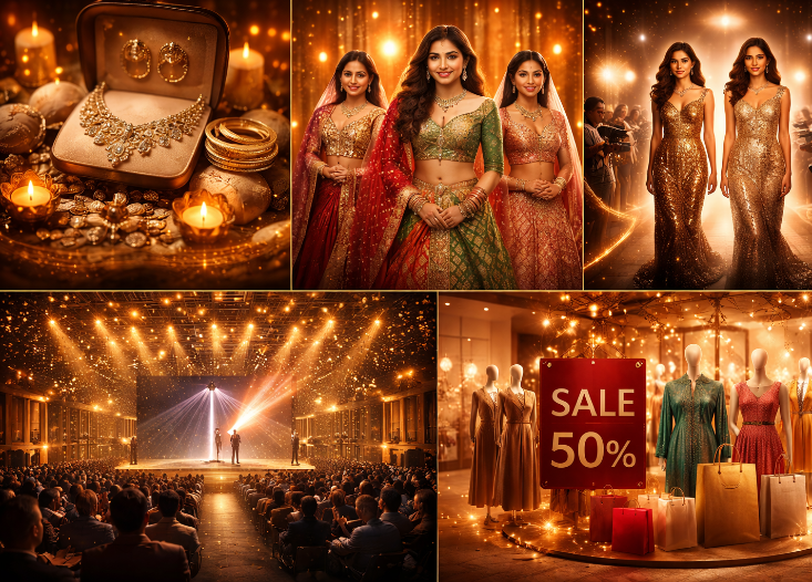 Festive collections, mega-sale campaigns, walk-in boost videos.